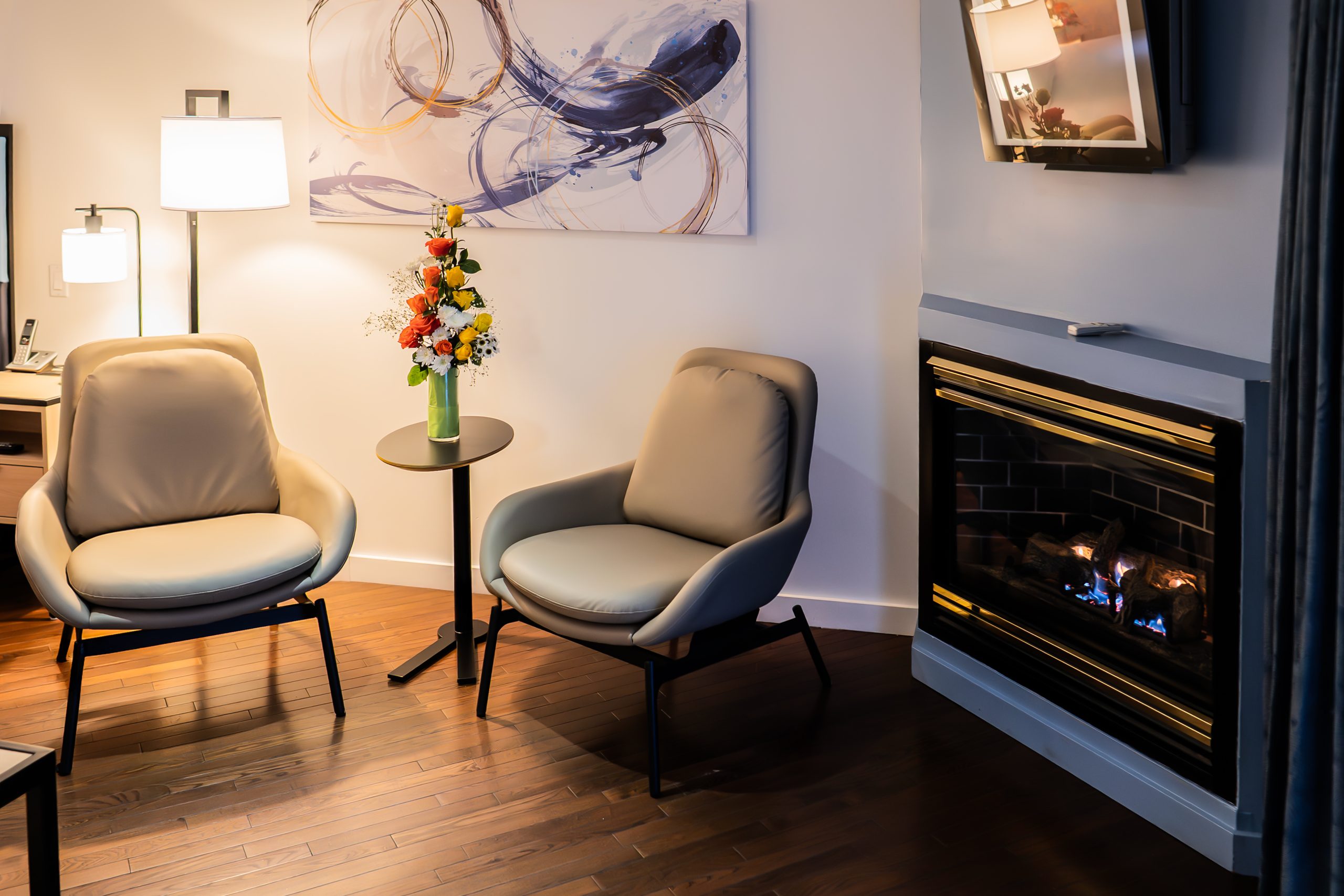- Modern elegance with a fireplace and spacious sitting area